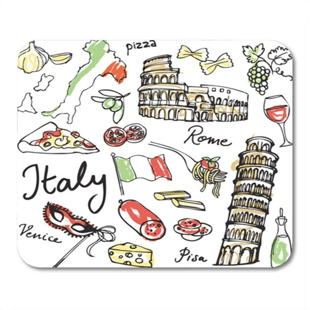 Jsdart Italian Of Italy Food Doodle Sketch Flag Rome Spaghetti Mousepad Mouse Pad Mouse Mat 9x10 Inch Walmart Ca